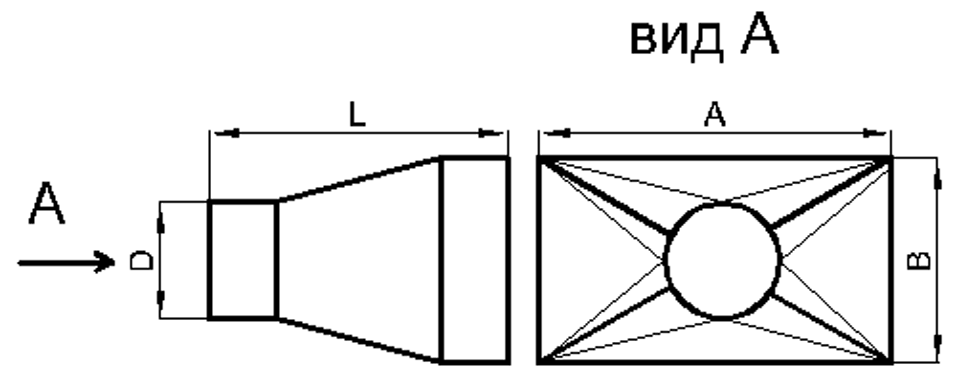 Переход прямоугольное сечение на круглое сечение (центральный, тип 1)