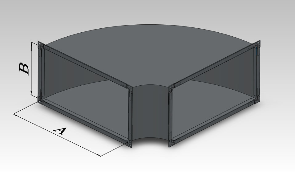 Отводы производятся из оцинкованной стали определенной толщины. Прямоугольное изделие собирается из четырех основных элементов: двух боковых стенок, а также внешней и внутренней сторон. На края отвода устанавливаются фланцы. Стандартные варианты угла поворота включают значения от 15 до 90 градусов.