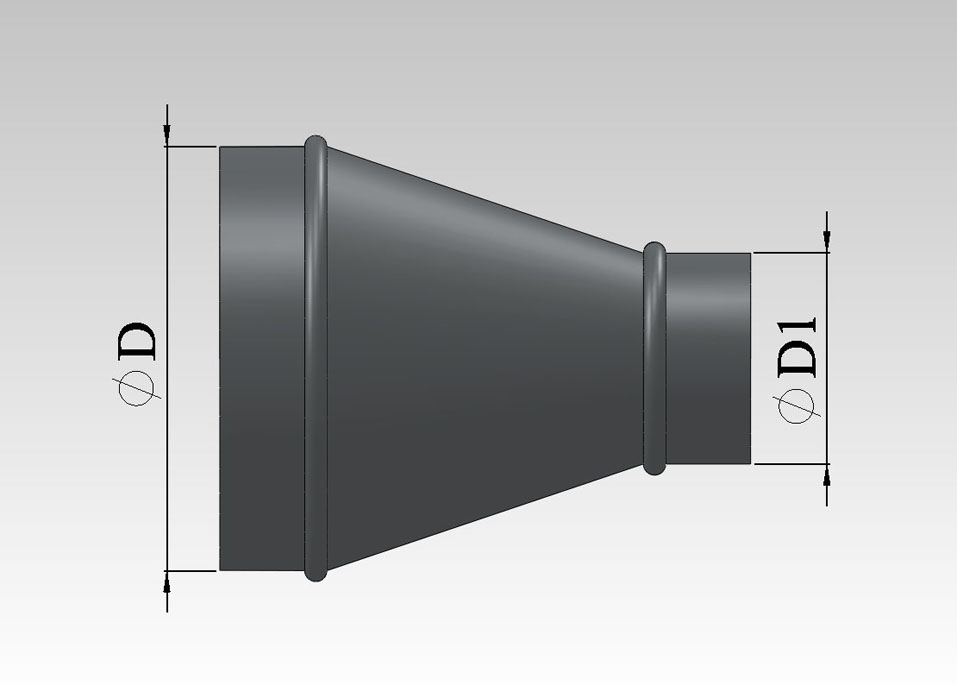 Данный переход стыкует круглые воздуховоды разного диаметра. Смещение является центральным.
